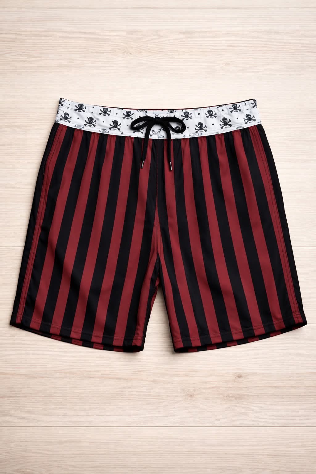 The Crimson Captain Boys Swim Trunks are a classic, pirate-inspired staple designed for comfort, movement, and everyday water adventures.