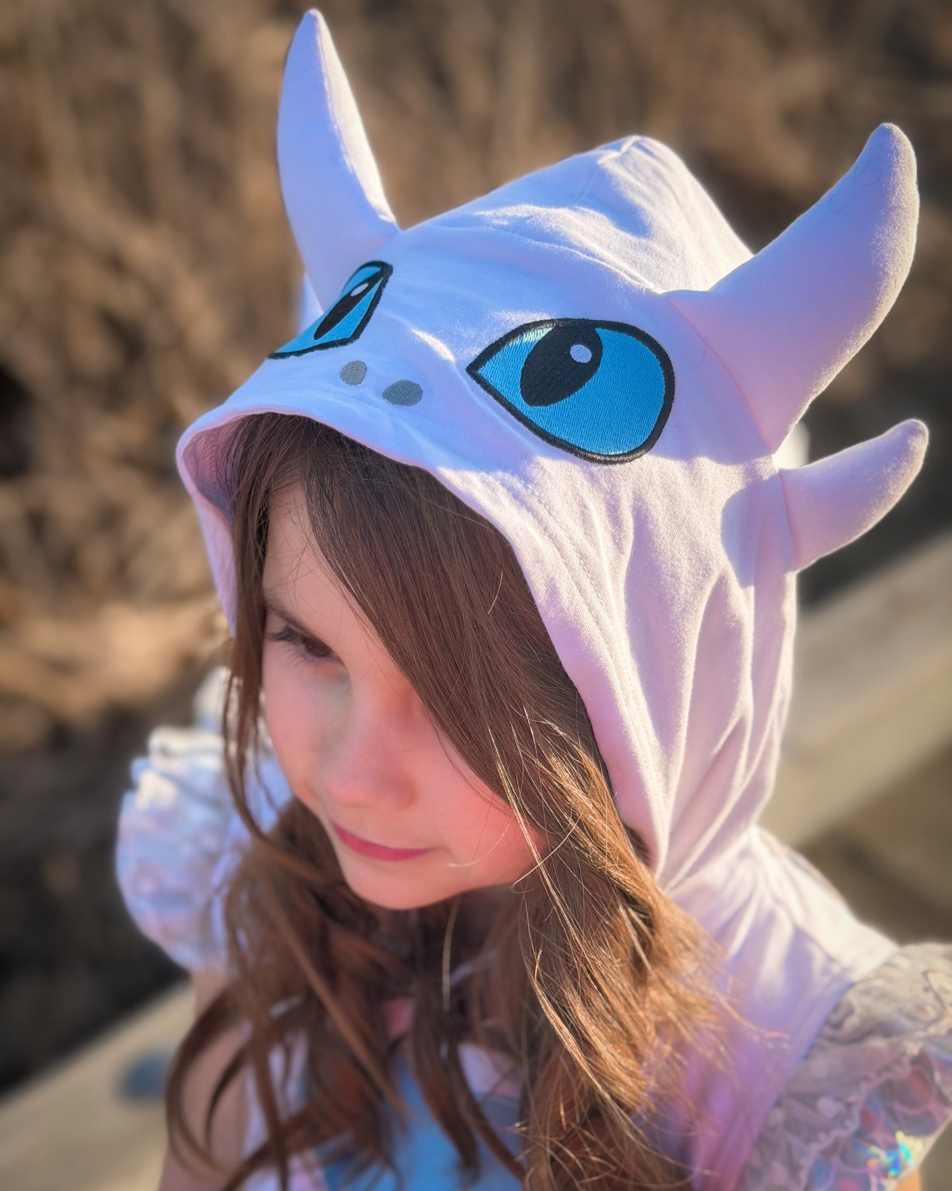 • Embroidered dragon hood with playful character details