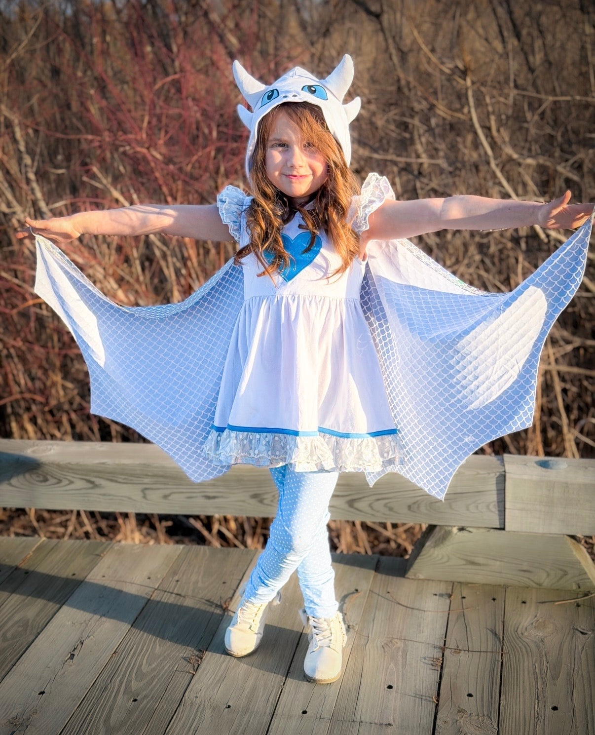 The Light Wing Tunic Set is a magical outfit designed for little dragon riders ready to soar into their next adventure.